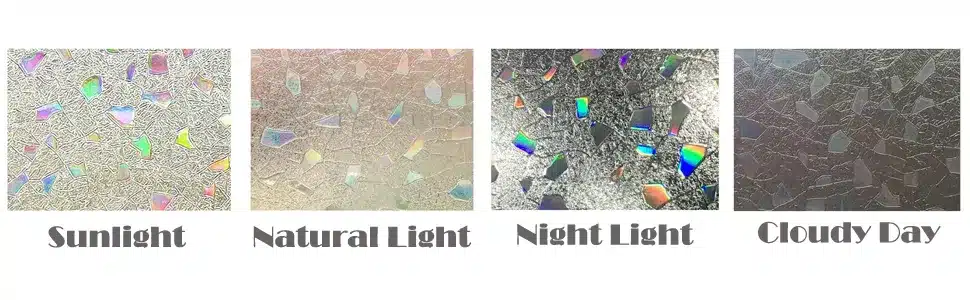 สูญญากาศติดกระจกอาคาร Stone Laser Effect แสงอาทิตย์ที่ตกลงบนฟิล์มจะเป็นสีรุ้ง รุ่น J010 กว้าง 90ซม ความยาวตัดขายเป็นเมตร (ราคาต่อเมตร) ความหนาฟิล์ม 0.24 มม.