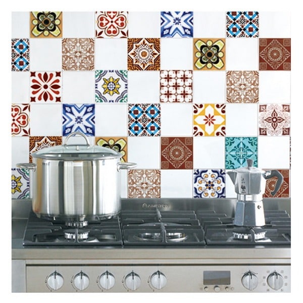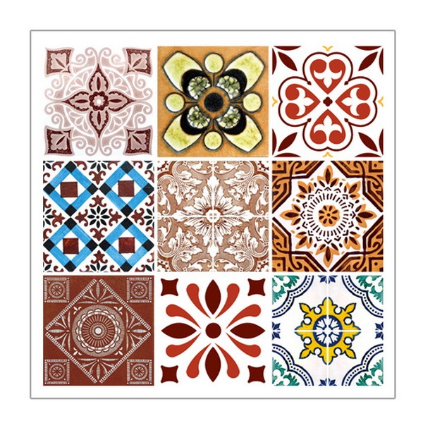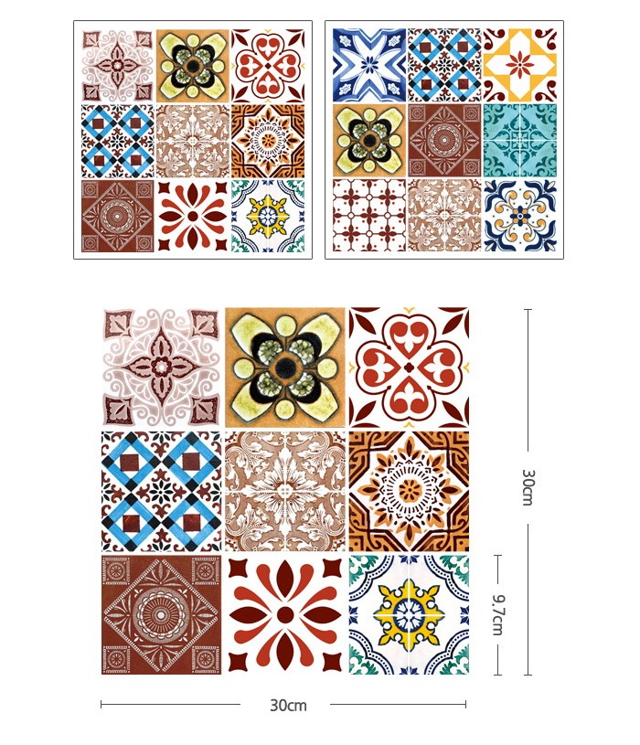 สติ๊กเกอร์กระเบื้องโบราณนอร์ดิคสไตล์ HP-7003 Nordic style Brown Marble Tile sticker ลายกระเบื้องโราณ 1 แผ่นเป็นภาพกระบื้อง 10×10 คละลาย
